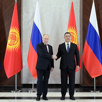 Российский лидер прилетел в Киргизию 25 ноября. У трапа Путина лично встретил Жапаров. В честь прибытия важного гостя в воздушной гавани Бишкека подняли государственные флаги России и Киргизии, уложили красную ковровую дорожку, вдоль которой встал почетный караул.