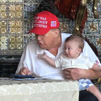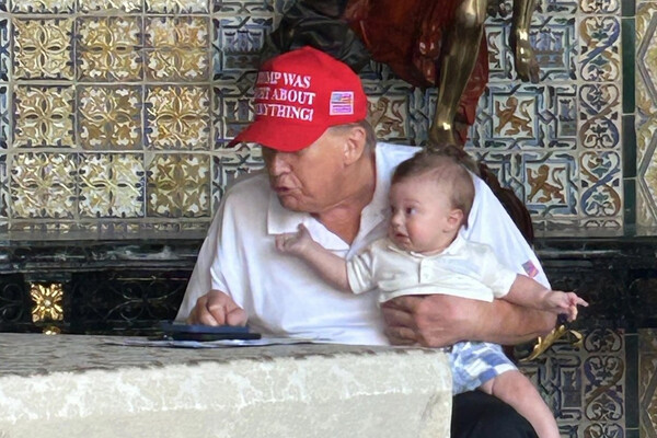 Для отдыха с семьей президент США выбрал не официальный костюм, а повседневную одежду. Он надел красную кепку с надписью «Трамп был прав во всем», а также белую футболку-поло и черные штаны. Где именно был сделан снимок, не уточняется. На заднем фоне можно увидеть расписную плитку на стене, в связи с чем можно сделать вывод, что президент находился где-то за пределами своей официальной резиденции в Вашингтоне.