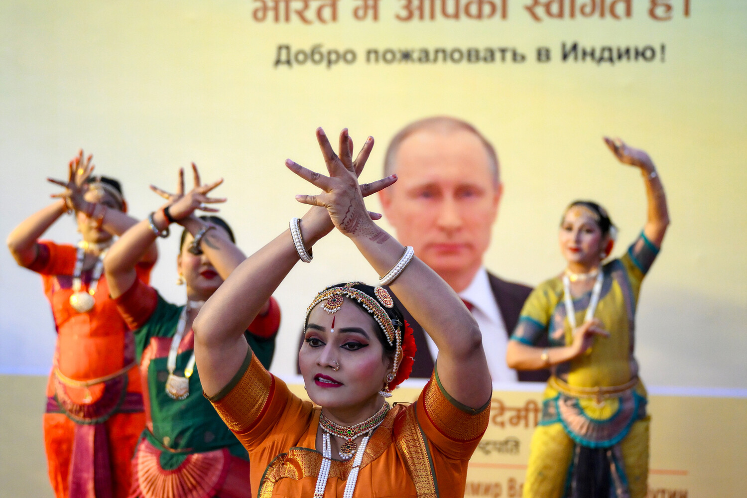 Индийские девушки в национальных костюмах исполнили традиционный танец перед президентом РФ Владимиром Путиным и премьер-министром Индии Нарендрой Моди. Об этом пишет ТАСС.