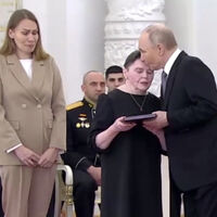 Путин выразил соболезнования родным погибшего, обнял мать героя, поцеловал ее в лоб и вручил медаль, а также пожал руку супруге сержанта.
