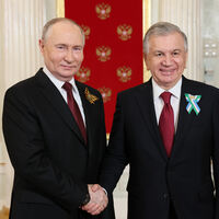 Они поговорили после церемонии совместного фотографирования, в которой приняли участие главы делегаций форума. Путин и Мирзиёев кратко пообщались по пути в зал пленарного заседания, приобняв друг друга.