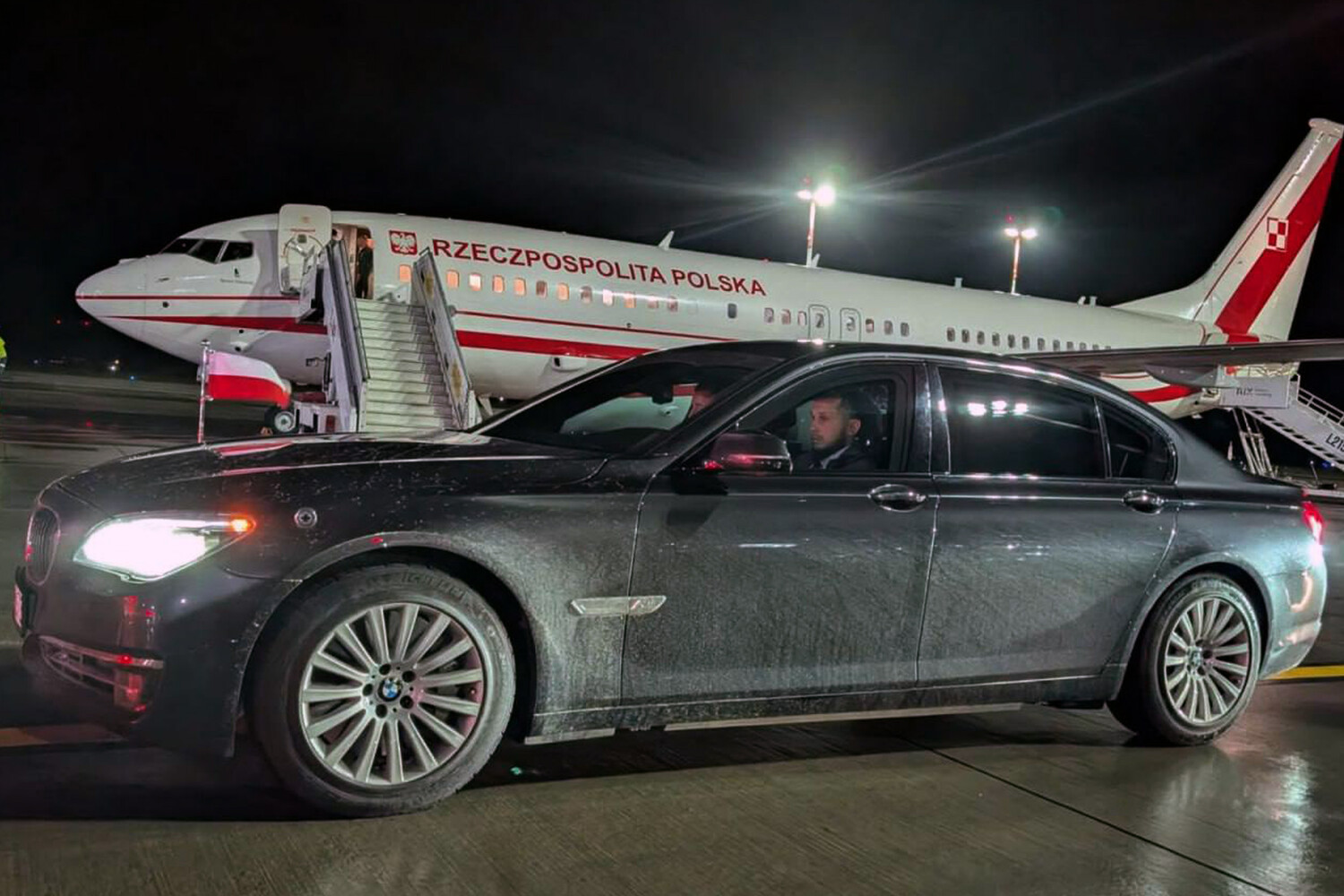 К посту прикреплена фотография, на которой можно увидеть грязный черный автомобиль у трапа самолета Навроцкого. Как уточнило агентство, этот снимок быстро распространился в сети и вызвал негативные комментарии.