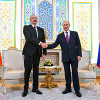 Уточняется, что Путин также поздравил Алиева с днем рождения, а к беседе двух лидеров, которая носила «теплый и дружеский характер», присоединилась первый вице-президент Азербайджана Мехрибан Алиева.