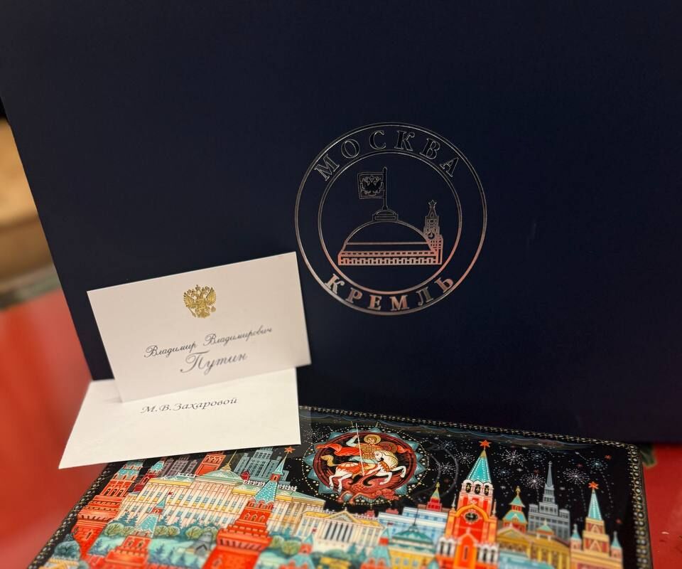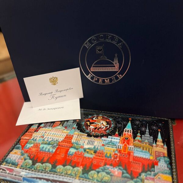 Официальный представитель МИД России Мария Захарова показала в своем Telegram-канале фотографию подарка, который ей вручил президент РФ Владимир Путин.