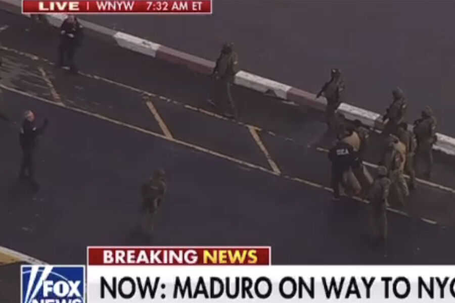 В Нью-Йорке заметили президента Венесуэлы Николаса Мадуро, сопровождаемого силовиками в ходе транспортировки в суд. Кадры публикует американский телеканал Fox News.