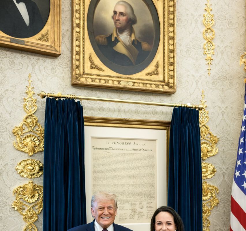 Белый дом опубликовал фото Трампа с Нобелевской премией Мачадо