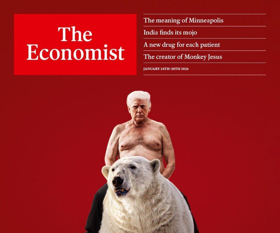 Британский журнал The Economist опубликовал обложку с голым президентом США Дональдом Трампом, скачущим на белом медведе, — одном из символов Гренландии.