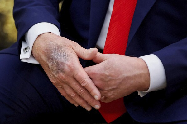 1 января газета The Wall Street Journal писала, что Трамп стремится скрывать физические признаки старения и возможные недомогания, используя косметику для маскировки синяков на руках. В публикации говорится, что советники американского президента все чаще замечают внешние проявления его возраста. Так, во время съезда Республиканской партии в Милуоки кожа Трампа оказалась настолько чувствительной, что у американского лидера началось кровотечение после того, как его случайно задела кольцом генеральный прокурор Пэм Бонди.
