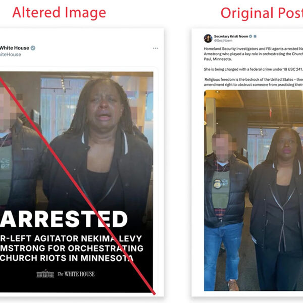 Белый дом подловили на публикации фейковой фотографии активистки Некимы Леви Армстронг, выступающей против иммиграционной политики американской администрации. Журналисты CBS News проанализировали снимок и пришли к выводу, что оригинал был изменен цифровым способом.