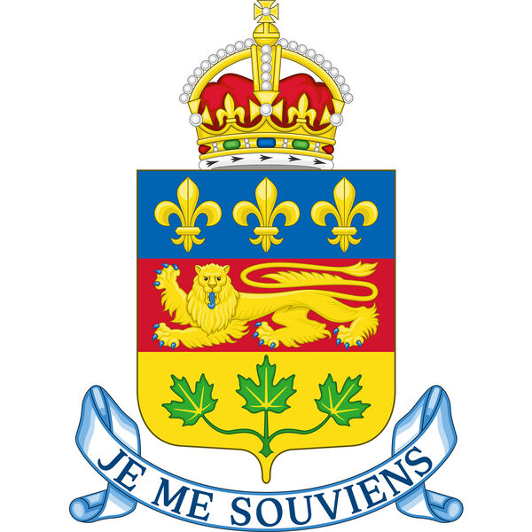 Герб Квебека представляет из себя щит. Сверху изображены три золотые лилии, символизирующие связь с Францией, по центру — золотой лев, напоминающий о британском наследии, снизу — три кленовых листа, обозначающие нахождение провинции в составе Канады. Под щитом присутствует надпись «Я помню». Сама корона расположена вверху герба.