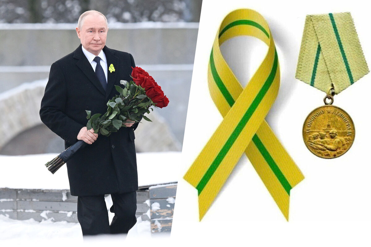 27 января, в 82-ю годовщину снятия блокады Ленинграда, Путин возложил цветы к монументу «Рубежный камень» на Невском пятачке. У монумента Путина встретили полпред президента в Северо-Западном федеральном округе Игорь Руденя и губернатор Ленинградской области Александр Дрозденко. У них были такие же ленточки.