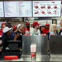 Президент Дональд Трамп во время визита в штат Джорджия на юго-востоке США посетил ресторан быстрого питания, где заказал гамбургеры для своей команды. Видео опубликовала The New York Post.