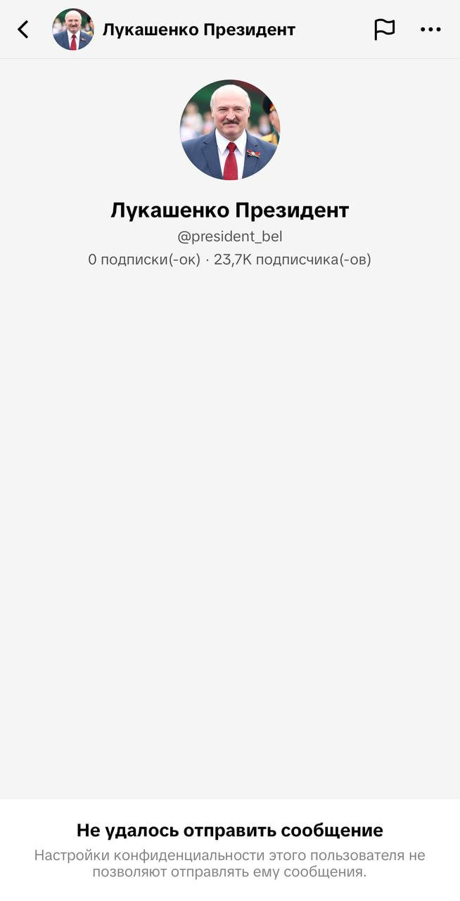 Президент Белоруссии Александр Лукашенко закрыл личные сообщения в своем TikTok-аккаунте после того, как накануне поздравил женщин с наступающим 8 Марта и призвал их писать ему в «личку», если их обидит кто-то из мужчин. Корреспондент «Газеты.Ru» убедился, что белорусскому лидеру невозможно написать в приложении.