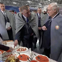 Президент Белоруссии Александр Лукашенко в ходе рабочего визита в Могилевскую область угостил журналистов красной икрой в рыбхозе «Палуж». Об этом сообщает Telegram-канал «Пул Первого».