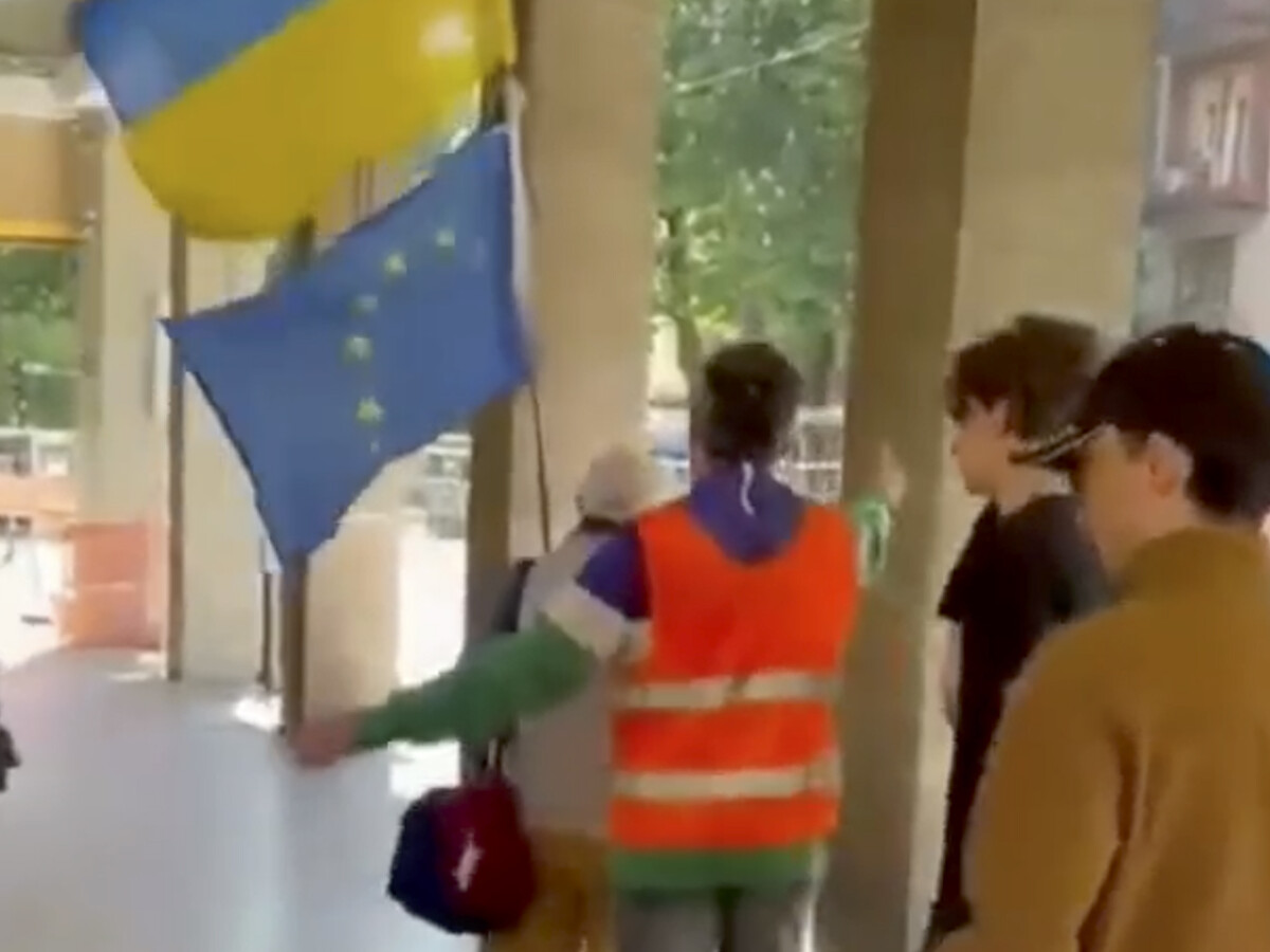 Как сообщила газета Leggo, в этот же день в итальянском городе Болонья пожилого мужчину с флагом Украины не допустили к участию в акции, несмотря на его возмущения.