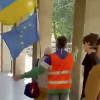 «Напавшие активисты, считающие киевский режим нацистским, срывали украинские флаги и кричали: «Уберите фашистов с марша!» — говорится в публикации.