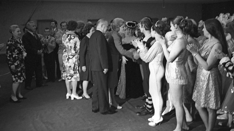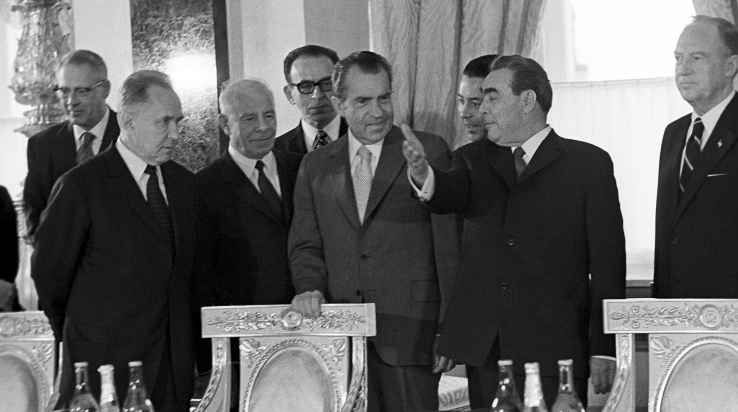 Генеральный секретарь ЦК КПСС Леонид Брежнев и президент США Ричард Никсон перед началом переговоров, 23 мая 1972 года Президент США Ричард Никсон со своей супругой Патрицией во время прибытия в аэропорт Внуково, 22 мая 1972 года Супруга президента США Ричарда Никсона Патриция Никсон в школе №42 (с изучением некоторых предметов на иностранных языках) в московском районе Черемушки, 23 мая 1972 года Президент США Ричард Никсон и председатель Президиума Верховного Совета СССР Николай Викторович Подгорный перед началом переговоров в Кремле, 23 мая 1972 года Президент США Ричард Никсон и генсек ЦК КПСС Леонид Брежнев во время подписания Договора об ограничении стратегических вооружений, 26 мая 1972 года Супруга президента США Патриция Никсон в вагоне поезда Московского метрополитена, 23 мая 1972 года Президент США Ричард Никсон и генеральный секретарь ЦК КПСС Леонид Брежнев после подписания соглашения о сотрудничестве СССР и США в исследовании и использовании космического пространства в мирных целях, 24 мая 1972 года Супруга президента США Патриция Никсон во время посещения Государственного универсального магазина, 24 мая 1972 года Супруга президента США Патриция Никсон посетила Московский часовой завод. Справа от нее Виктория Петровна Брежнева и Лидия Дмитриевна Громыко, 26 мая 1972 года Супруга президента США Патриция Никсон во время посещения Государственного универсального магазина, 24 мая 1972 года Супруга президента США Патриция Никсон во время посещения Московского академического хореографического училища. В центре — Виктория Петровна Брежнева. Справа — директор хореографического училища С.Н. Головкина, 24 мая 1972 года Президент США Ричард Никсон с супругой Патрицией. Патриция Никсон общается за кулисами с артистами цирка после выступления, 24 мая 1972 года Супруга президента США Патриция Никсон в Музее землеведения в Москве, 23 мая 1972 года