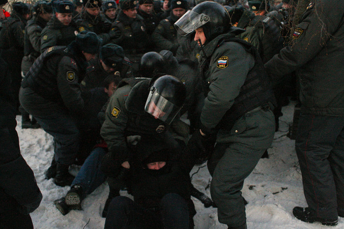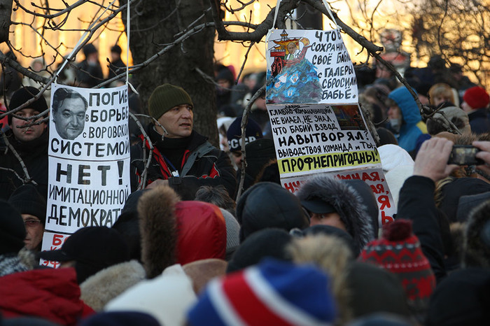 На несанкционированный митинг оппозиции на Лубянской площади пришло, по оценкам полиции, около 500 человек. По словам самих участников, их собралось 7-8 тыс. Через 10 минут после начала митинга были задержаны: Удальцов, Немцов, Навальный (включен в список террористов и экстремистов), Ксения Собчак, Алексей Гаскаров и другие лица оппозиции.