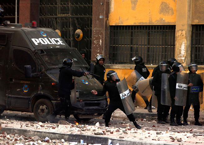 Египет отметил вторую годовщину революции массовыми беспорядками и несколькими жертвами. Столкновения с полицией произошли в нескольких городах, радикалы поджигали правительственные здания и офисы «Братьев-мусульман» (организация запрещена в России).