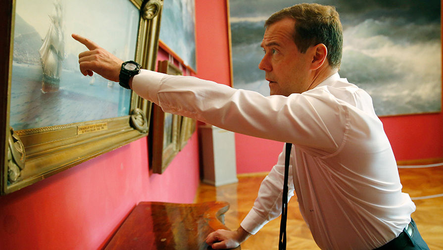 Председатель правительства России Дмитрий Медведев во время осмотра яблоневых садов в Ставропольском крае, 9 октября 2018 года Глава Чечни Рамзан Кадыров и премьер-министр РФ Дмитрий Медведев, 2012 год Дмитрий Медведев во время посещения Южно-Курильской центральной районной больницы, 2012 год Председатель правительства РФ Дмитрий Медведев и Лео Бокерия во время посещения Научного центра сердечно-сосудистой хирургии им. А.Н.Бакулева, 2016 год Премьер-министр России Дмитрий Медведев и президент Владимир Путин во время отдыха на берегу озера Ильмень, 2016 год Премьер-министр РФ Дмитрий Медведев во время прогулки на катере по озеру Ильмень, 2016 год Премьер-министр Дмитрий Медведев, 2015 год Рабочая поездка в Крым. Премьер-министр РФ Дмитрий Медведев во время посещения картинной галереи имени Ивана Айвазовского, 2016 год Дмитрий Медведев в традиционной еврейской ермолке (кипе) рядом со Стеной Плача в Иерусалиме, 2016 год Дмитрий Медведев с супругой Светланой во время праздничного богослужения по случаю Рождества Христова в храме Христа Спасителя, 2017 год Премьер-министр России Дмитрий Медведев и президент Владимир Путин во время церемонии возложения венков к Могиле Неизвестного Солдата у стен Кремля в День памяти и скорби, 2017 год Председатель правительства России Дмитрий Медведев на смотровой площадке на янтарном карьере во время посещения Калининградского янтарного комбината, 23 октября 2018 Премьер-министр России Дмитрий Медведев и президент Белоруссии Александр Лукашенко во время торжественной церемонии открытия II Европейских игр на стадионе «Динамо» в Минске, 21 июня 2019 года Премьер-министр России Дмитрий Медведев и президент, председатель кабинета министров Туркмении Гурбангулы Бердымухамедов около автомобиля Aurus Senat в городе Туркменбаши, август 2019 года Председатель правительства России Дмитрий Медведев и первый вице-президент Азербайджана Мехрибан Алиева во время встречи в Москве, 21 ноября 2019 года Председатель правительства России Дмитрий Медведев во время интервью российским телеканалам, 5 декабря 2019 года Президент РФ Владимир Путин и председатель правительства РФ Дмитрий Медведев перед встречей с членами правительства, 15 января 2020 года Президент России Владимир Путин и премьер-министр Дмитрий Медведев в тренажерном зале резиденции «Бочаров ручей», август 2015 года Премьер-министр РФ Дмитрий Медведев в одном из парков в Куала-Лумпуре, 2015 год Премьер-министр РФ Дмитрий Медведев в своем кабинете в резиденции «Горки», 27 декабря 2019 года Председатель правительства России Дмитрий Медведев (слева) во время осмотра животноводческого комплекса в селе Залужское Воронежской области, 2013 год Председатель правительства РФ Дмитрий Медведев и руководитель ФНС РФ Михаил Мишустин (слева) во время посещения Федеральной налоговой службы РФ, 13 февраля 2019 года Председатель правительства РФ Дмитрий Медведев в подмосковной резиденции «Горки» перед заседанием кабинета министров РФ, 2016 год