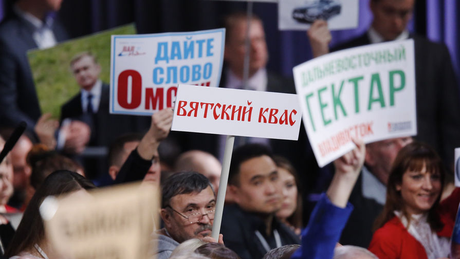 В Москве завершилась ежегодная большая пресс-конференция президента и кандидата в президенты Владимира Путина, за 3 часа 41 минуту ему задали десятков вопросов. Всего в этом году было аккредитовано более 1,6 тыс. журналистов, многие из них принесли в зал самодельные плакаты: некоторые с названиями изданий, некоторые — с важными или не очень темами. Плакаты на пресс-конференции — в репортаже фотокорреспондента «Газеты.Ru» Артема Сизова.