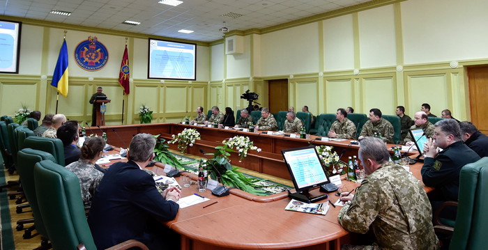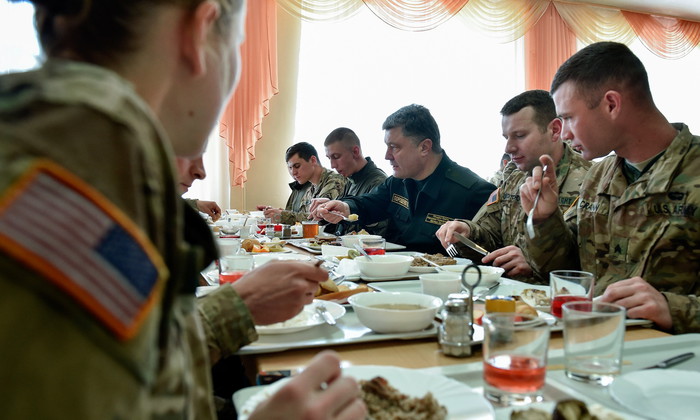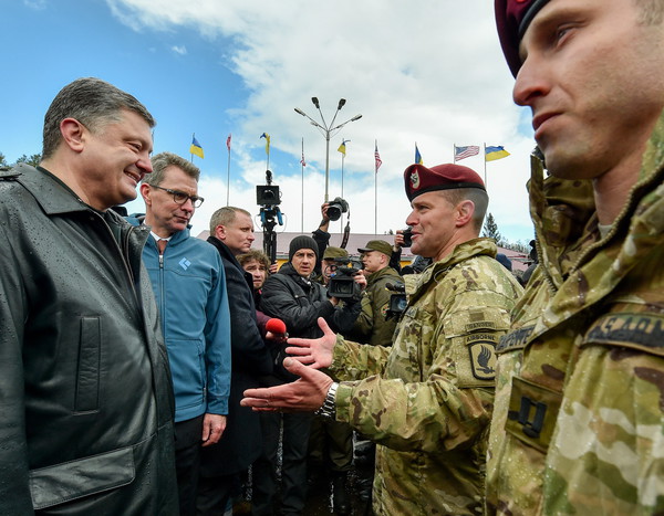 Президент Украины Петр Порошенко принял участие в торжественном открытии украинско-американских командно-штабных учений «Фиарлес гардиан — 2015». Учения проходят в Международном центре миротворчества и безопасности во Львовской области, где части ВСУ и нацгвардии обучают американские инструкторы.