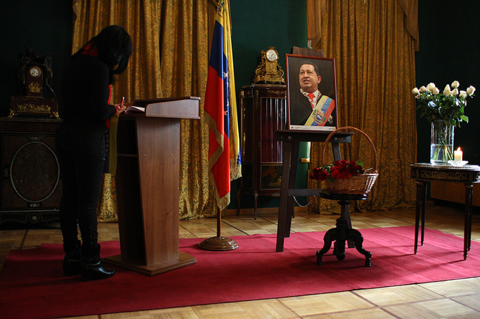 06 марта 2013, 17:59 Фото Прощание с Чавесом в посольстве Венесуэлы в Москве close Секс-символ 80-х: как менялась Наталья Негода День рождения в колонии. Михаилу Ефремову — 60 Россия показала новинки военной авиации в Дубае Двухэтажные и «гармошки»: какие троллейбусы ходили в Москве В посольстве Венесуэлы в России состоялась церемония прощания с Уго Чавесом, скончавшимся от рака.