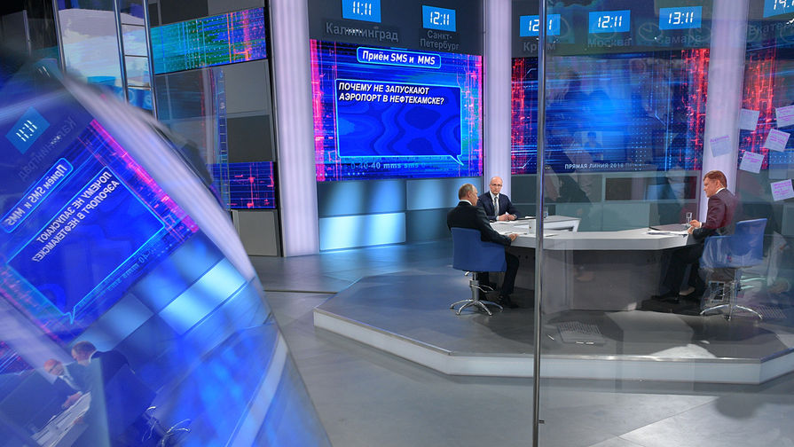 Жительница Иваново перед началом трансляции «прямой линии» с президентом России Владимиром Путиным в Москве, 7 июня 2018 года Во время «прямой линии» с президентом России Владимиром Путиным в Москве, 7 июня 2018 года Во время «прямой линии» с президентом России Владимиром Путиным в Москве, 7 июня 2018 года Футбольные тренеры во время «прямой линии» с президентом России Владимиром Путиным в Москве, 7 июня 2018 года