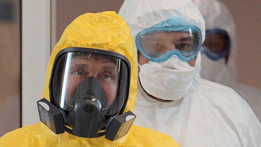 На кадрах из больницы видно, что Путин был одет в желтый защитный костюм и респиратор.