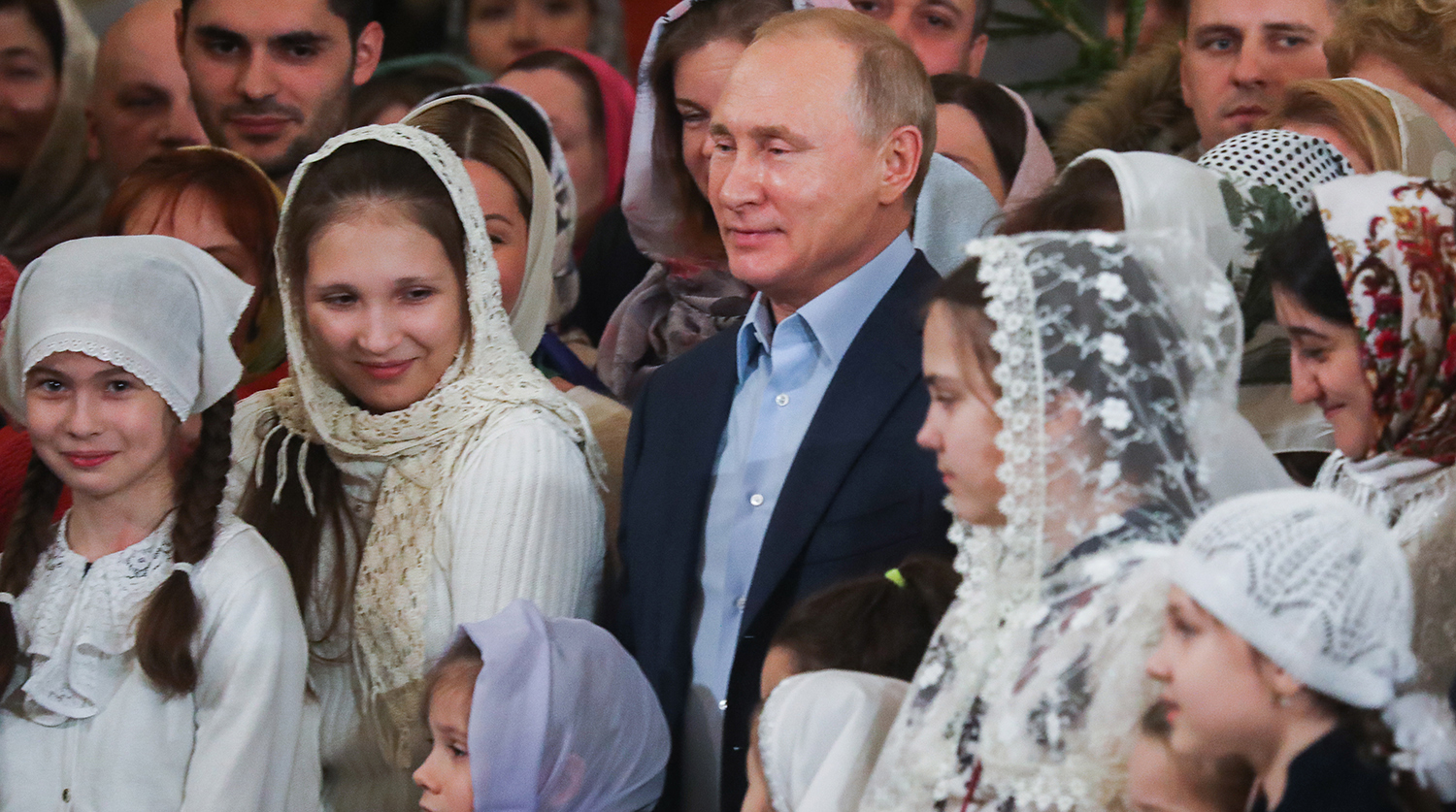 Президент России встретил Рождество в Санкт-Петербурге, в храме, в котором его крестили — Спасо-Преображенском соборе. Глава государства приехал в церковь еще до полуночи и принял участие в богослужении.