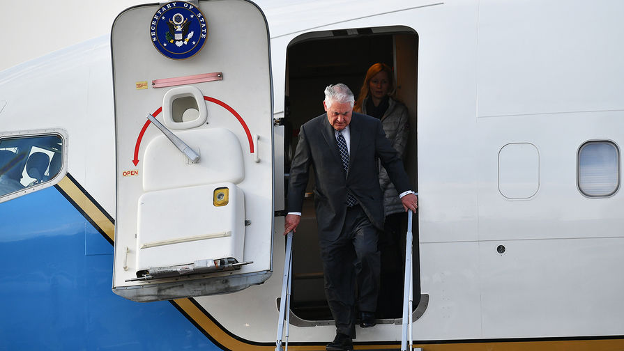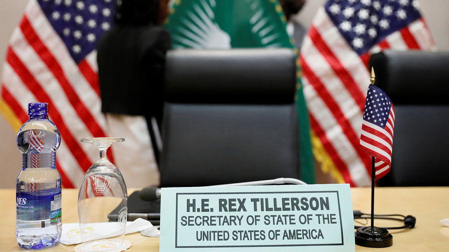 Госсекретарь США Рекс-Тиллерсон во время визита в Джибути, 9 марта 2018 года Госсекретарь США Рекс Тиллерсон в аэропорту Абуджи, Нигерия, перед завершением турне по странам Африки, 12 марта 2018 года Госсекретарь США Рекс Тиллерсон и президент Дональд Трамп во время встречи с президентом Египта в Белом доме, апрель 2017 года Председатель правительства России Владимир Путин и глава компании «ЕxxonMobil» Рекс Тиллерсон во время встречи в Сочи, 2011 год Министр иностранных дел Катара Мухаммад бен Абдуррахман аль-Тани и государственный секретарь США Рекс Тиллерсон в Вашингтоне, 27 июня 2017 года Госсекретарь США Рекс Тиллерсон во время выступления перед комитетом сената по международным отношениям в Вашингтоне, 13 июня 2017 года Госсекретарь США Рекс Тиллерсон после прибытия в московский аэропорт Внуково, 11 апреля 2017 года Госсекретарь США Рекс Тиллерсон и министр иностранных дел России Сергей Лавров Госсекретарь США Рекс Тиллерсон во время пресс-конференции во Флориде, 6 апреля 2017 года Госсекретарь США Рекс Тиллерсон во время форума Атлантического совета в Вашингтоне, 12 декабря 2017 года Госсекретарь США Рекс Тиллерсон и министр иностранных дел России Сергей Лавров во время встречи на полях АСЕАН в Маниле, август 2017 года Госсекретарь США Рекс Тиллерсон во время встречи с президентом Турции Реджепом Тайипом Эрдоганом в Анкаре, 15 февраля 2018 года Подготовка к пресс-конференции с участием госсекретаря США Рекса Тиллерсона в Аддис-Абебе, Эфиопия, 8 марта 2018 года