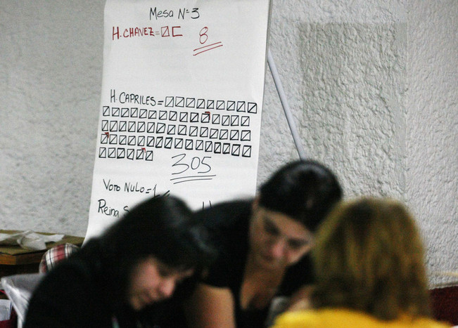 По данным Национального избирательного совета, подсчитавшего 90% поданных на воскресных выборах бюллетеней, за действующего главу государства проголосовали 7,4 млн человек – 54,44% избирателей. Основной противник Чавеса, 40-летний бывший губернатор штата Миранда юрист Энрике Каприлес-Радонски, баллотировавшийся от оппозиционного Блока демократического единства, получил 44,96% голосов.