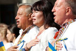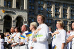 В шествии на Крещатике участвуют военные, медики, учителя, спортсмены, представители общественных организаций, волонтеры, иностранные гости и украинские политики, задействованы пять оркестров, оперные певцы и народные артисты.