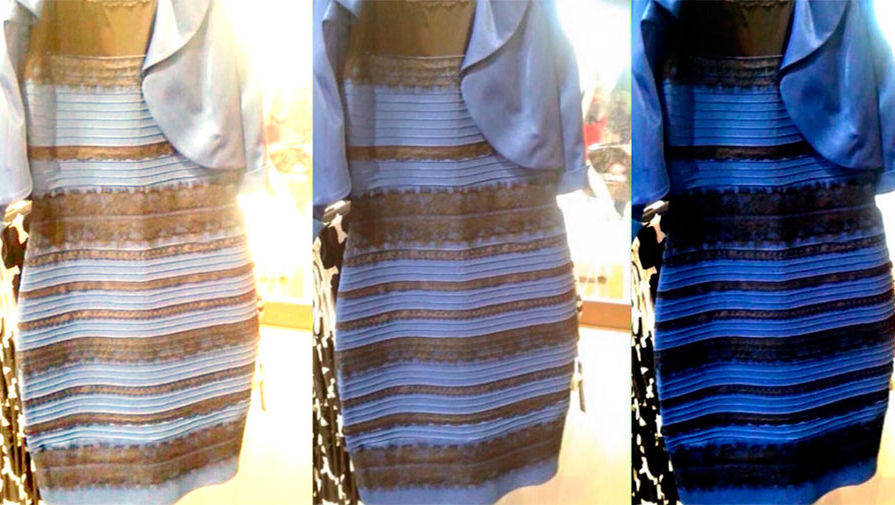 Например, международная команда специалистов выяснила, что восприятие цвета наряда зависит от пола и возраста испытуемых: женщины, а также пожилые люди чаще говорят о бело-золотом, в то время как молодые люди — о черно-синем платье.