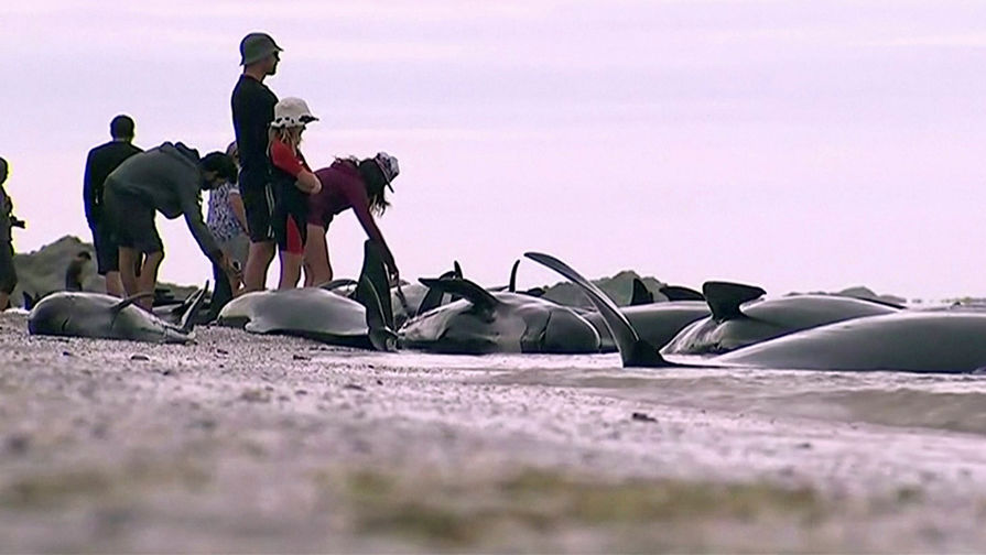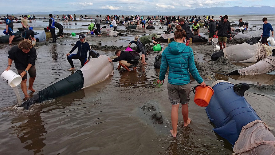 Более четырех сотен дельфинов-гринд выбросились на берег Новой Зеландии в пятницу. Как сообщают местные СМИ, большинство попавших в беду млекопитающих погибло, несмотря на усилия множества волонтеров из числа местных жителей. По словам Эндрю Ламасона, руководителя местного отделения департамента защиты окружающей среды, дельфины выбросились на песчаную косу Фэруэлл-Спит, которая ограничивает с севера бухту Голден-Бей новозеландского острова Южный.