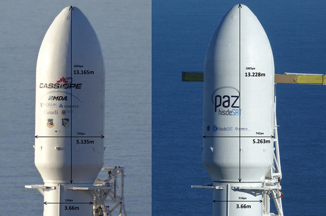 Компания изначально заявила, что в этот раз ракета летит с новым установленным обтекателем полезной нагрузки и первые переносы пуска были связаны с необходимостью дополнительных его проверок. На фотографии видна разница в ширине старого и нового обтекателя Falcon 9 – новый немного шире предыдущей версии.