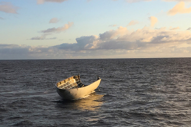 Обтекатель действительно цел! На кадрах, снятых с корабля, видно, как неповрежденная конструкция осталась на плаву и находится неподалеку от судна. Значит спасать обтекатели из космоса — реально!