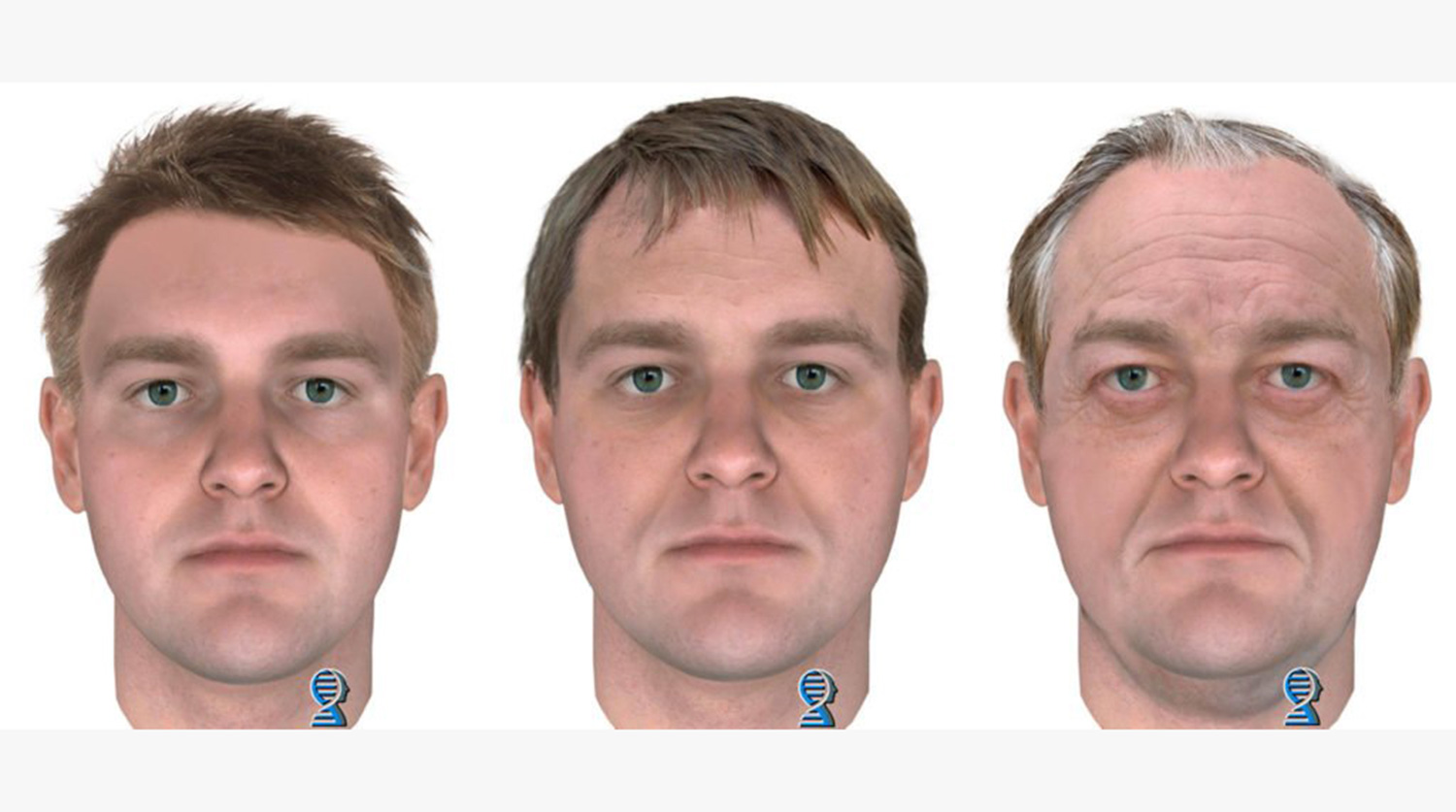 Составленный по ДНК портрет убийцы в 25, 45 и 65 лет