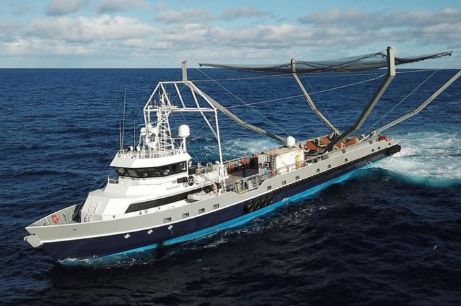 Для этой цели в море снова выведен специально оборудованный корабль «Мистер Стивен», на котором растянута прочная сеть.