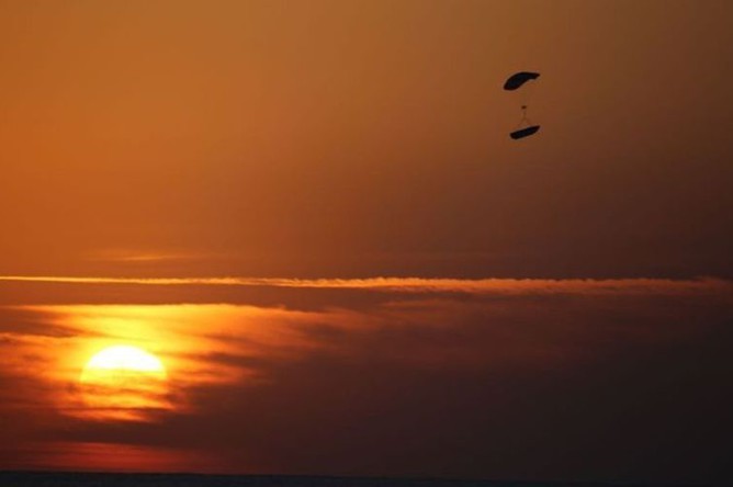 Приверно так должен выглядеть обтекатель, спускающийся на параплане после запуска