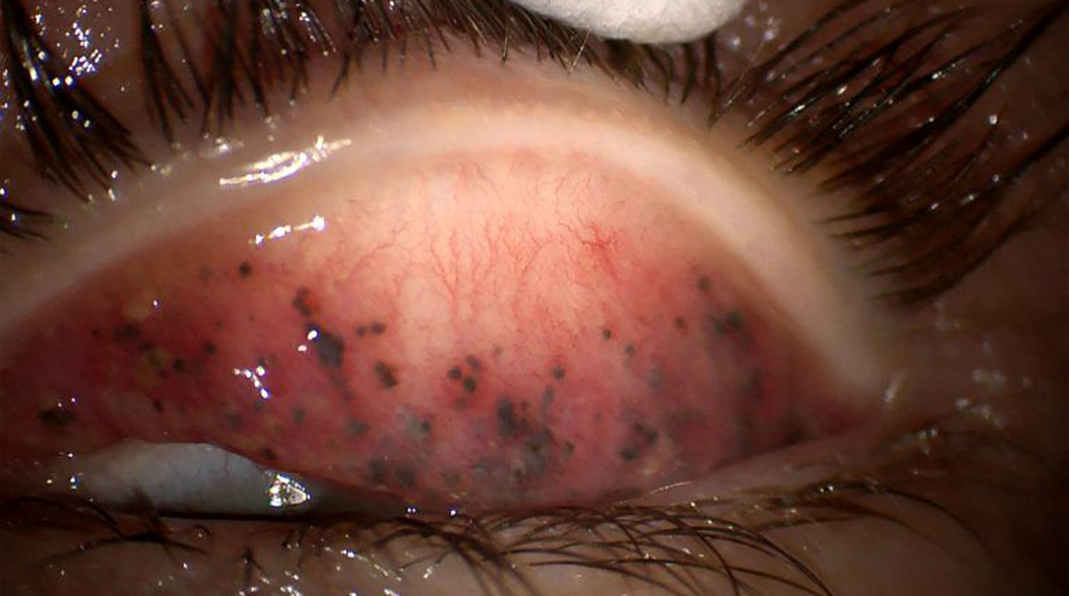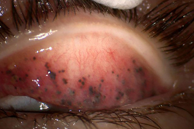 Вывернув веки пациентки, офтальмолог Дана Робаэй обнаружила там скопления твердых черных отложений.