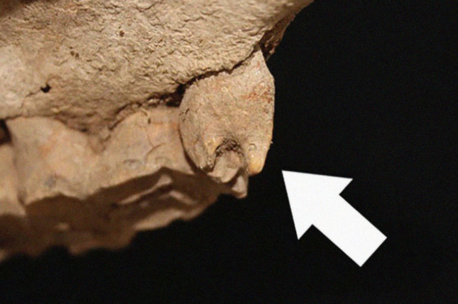 В одном из исследованных 85 захоронений ученые обнаружили череп с зубом, который, видимо, рос под неправильным углом и был срезан, возможно, при помощи камня. Сделано это было за 1150 лет до нашей эры –