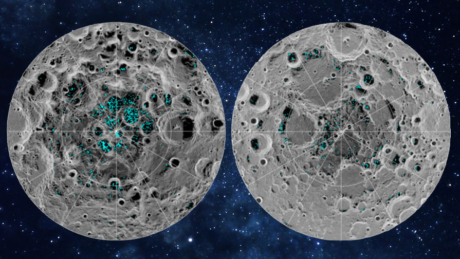 Вода на Луне есть и присутствует в виде льда в северных и южных полярных широтах. К таким выводам пришла группа ученых из нескольких университетов США, опубликовавших статью в журнале Proceedings of the National Academy of Sciences.