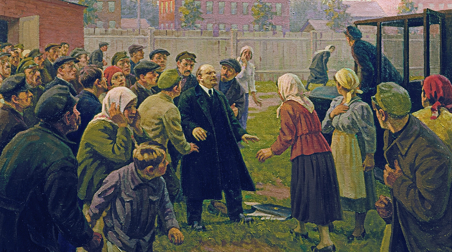 РИА «Новости»Под овации Ленин покидает трибуну. Публика рукоплещет. Он доволен собой. Теперь надо ехать на заседание Совнаркома, назначенное Свердловым на 9 вечера. Шофер Гиль уже завел мотор. Однако у самой машины Ильича останавливает женщина. Она жалуется, что на железнодорожных вокзалах конфискуют хлеб. Чуткий вождь начинает внимательно слушать просительницу…