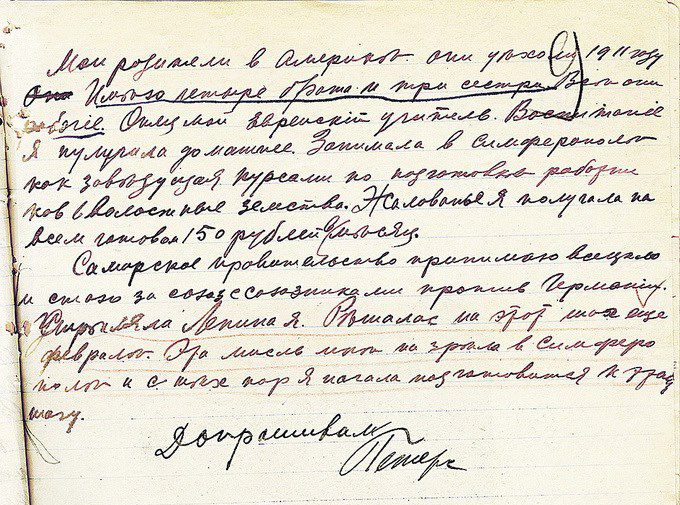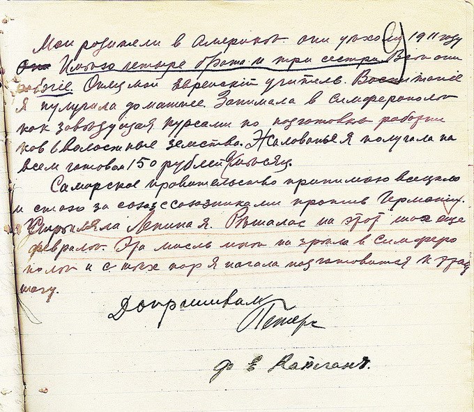 «Кто мне дал револьвер, не скажу. У меня никакого билета профсоюзного не было. Давно уже не служу. Откуда у меня деньги, я отвечать не буду. Стреляла я по убеждению. Я подтверждаю, что я приехала из Крыма. Связан ли мой социализм с Павлом Скоропадским (в тот период гетман Украины. – «Газета»), я отвечать не буду. Я не слышала ничего про организацию террористов, связанную с Борисом Савинковым (один из лидеров партии эсеров. – «Газета»). Есть ли у меня знакомые среди арестованных Чрезвычайной комиссией, не знаю. К теперешней власти на Украине отношусь отрицательно. Как отношусь к Самарской и Архангельской власти, не хочу отвечать».