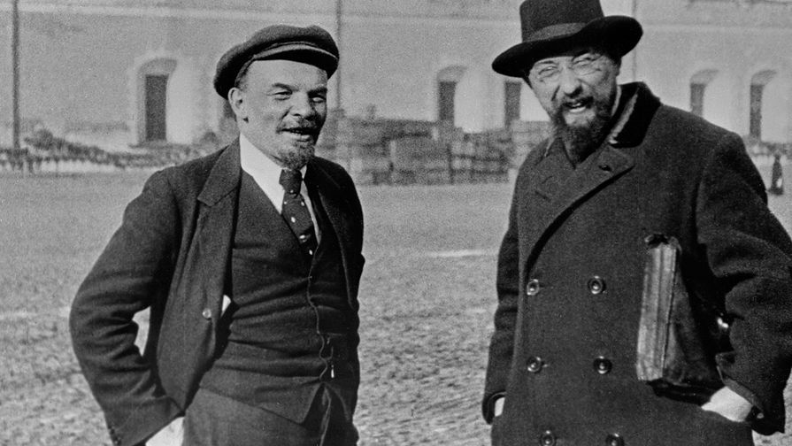 Владимир Ленин и управделами Совнаркома Владимир Бонч-Бруевич во время прогулки в Кремле, октябрь 1918 года