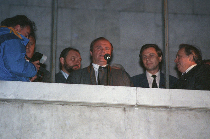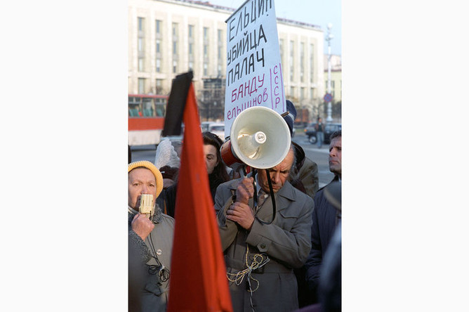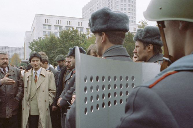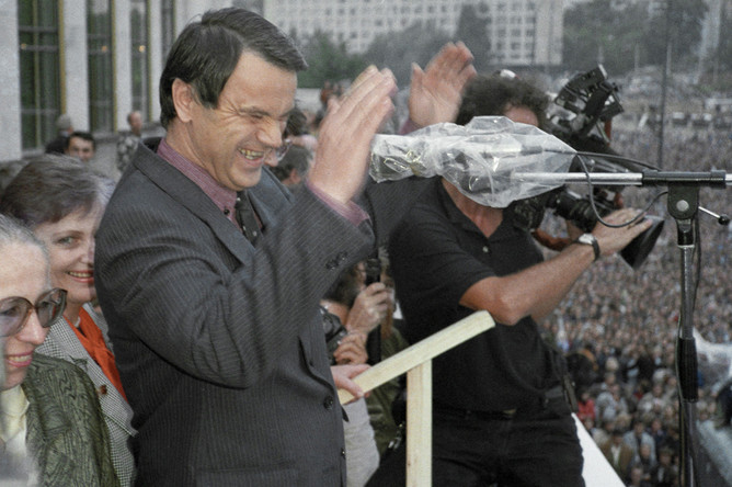 За Ельцина – не менее разнородная демократическая общественность. Даже привычный критик президента Валерия Новодворская высказывается в его поддержку. Многие известные артисты тоже на стороне Ельцина. Политически активная сегодня Лия Ахеджакова – и 25 лет назад была в первых рядах.