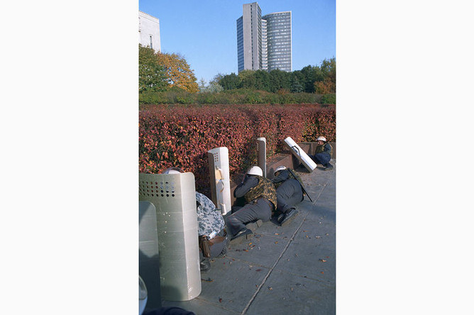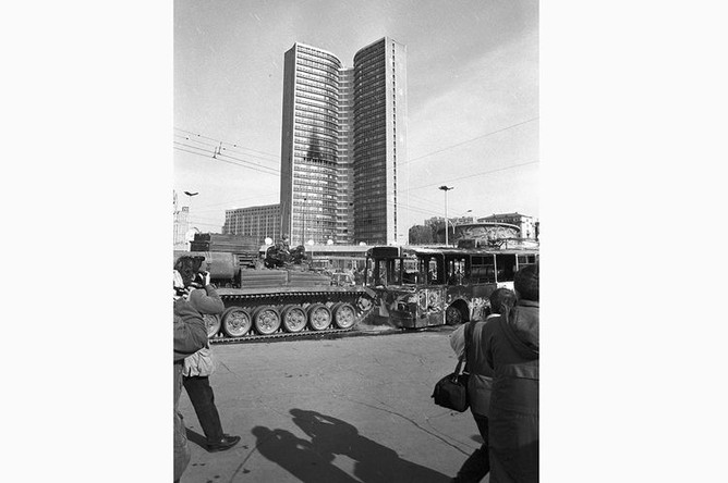 Защитники Верховного Совета начинают строить баррикады и прочие препятствия у Белого дома. Практически всем понятно, что мирного исхода у конфликта не будет.