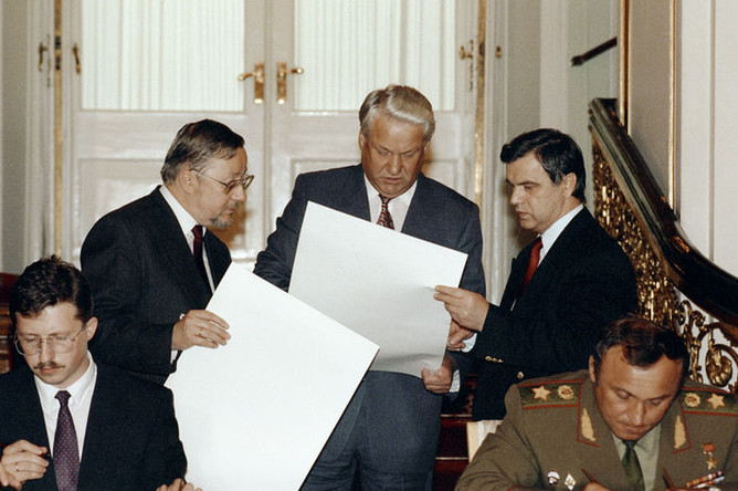 Во второй половине сентября 1993-го достиг своего апогея конституционный кризис, развивавшийся в стране с декабря прошлого года. Несмотря на распад СССР, переформатирование политических институтов власти состоялось еще не в полной мере. Из-за причудливого симбиоза пережитков советской системы и новых импульсов демократии в стране фактически оформилось двоевластие. В открытое противостояние с президентом России Борисом Ельциным вступил председатель Верховного Совета Руслан Хасбулатов.