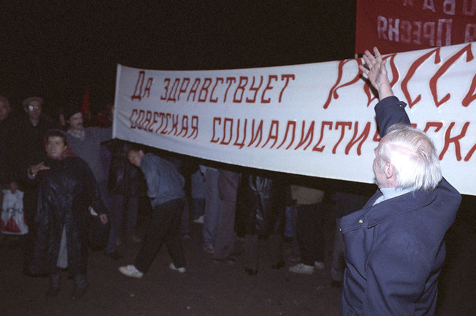 «Своим указом от 21 сентября президент России Борис Ельцин поставил себя вне закона, фактически совершив государственный переворот», — объявляет тереховский «Союз офицеров».